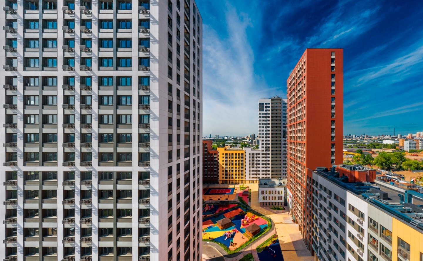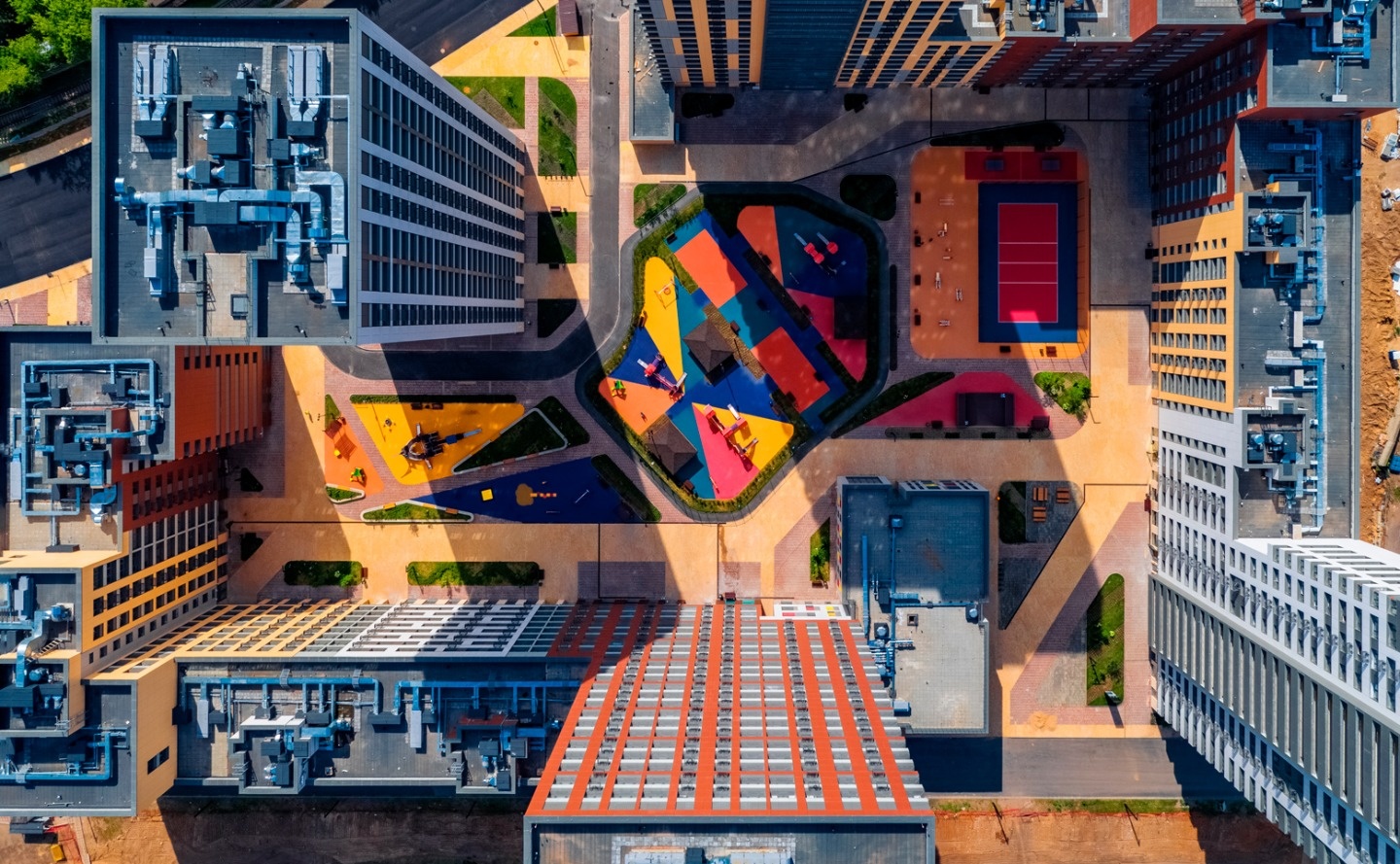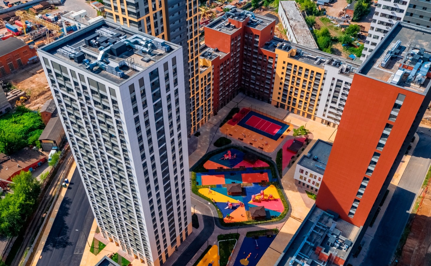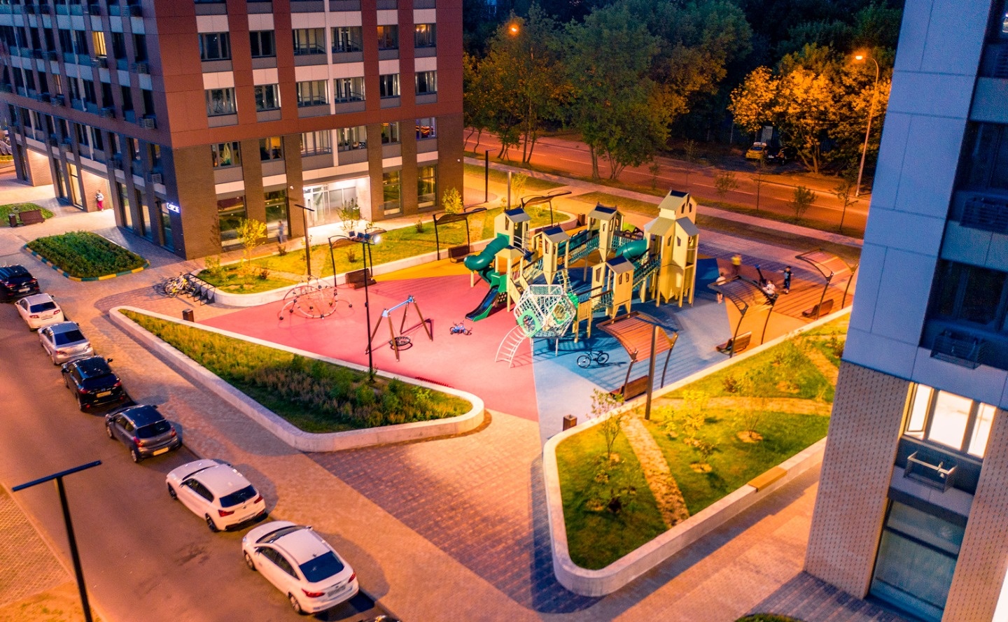 Внутри квартала расположены детские площадки, спортивные зоны и благоустроенные дворы без машин. Для маленьких жителей уже работает детский сад на 150 мест. Предусмотрен бизнес-центр с офисными помещениями, магазинами, ресторанами и кафе. Жители могут воспользоваться просторным подземным паркингом, который находится под круглосуточной охраной.