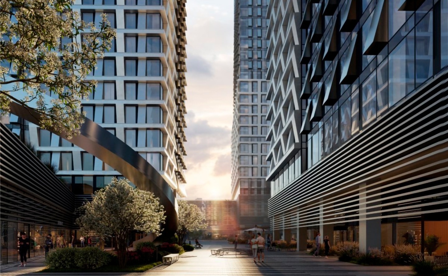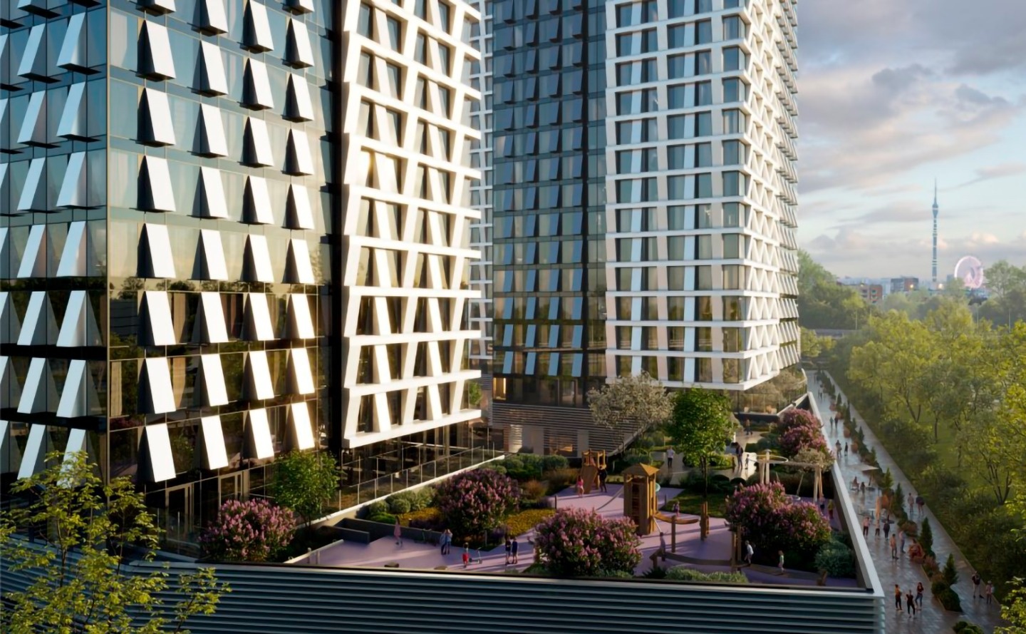 Жилой комплекс состоит из 4 башен с авторскими стеклянными фасадами. В лобби выполнена дизайнерская отделка и обустроены места для отдыха.