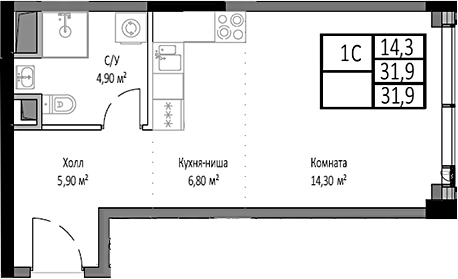 Количество комнатСтудияЭтаж18Площадь общая31.9Площадь жилая31.9Площадь кухни6.8Площадь комнат14.3Совмещенных санузлов1ОкнаУлицаОтделкаБез отделкиТелефонНет