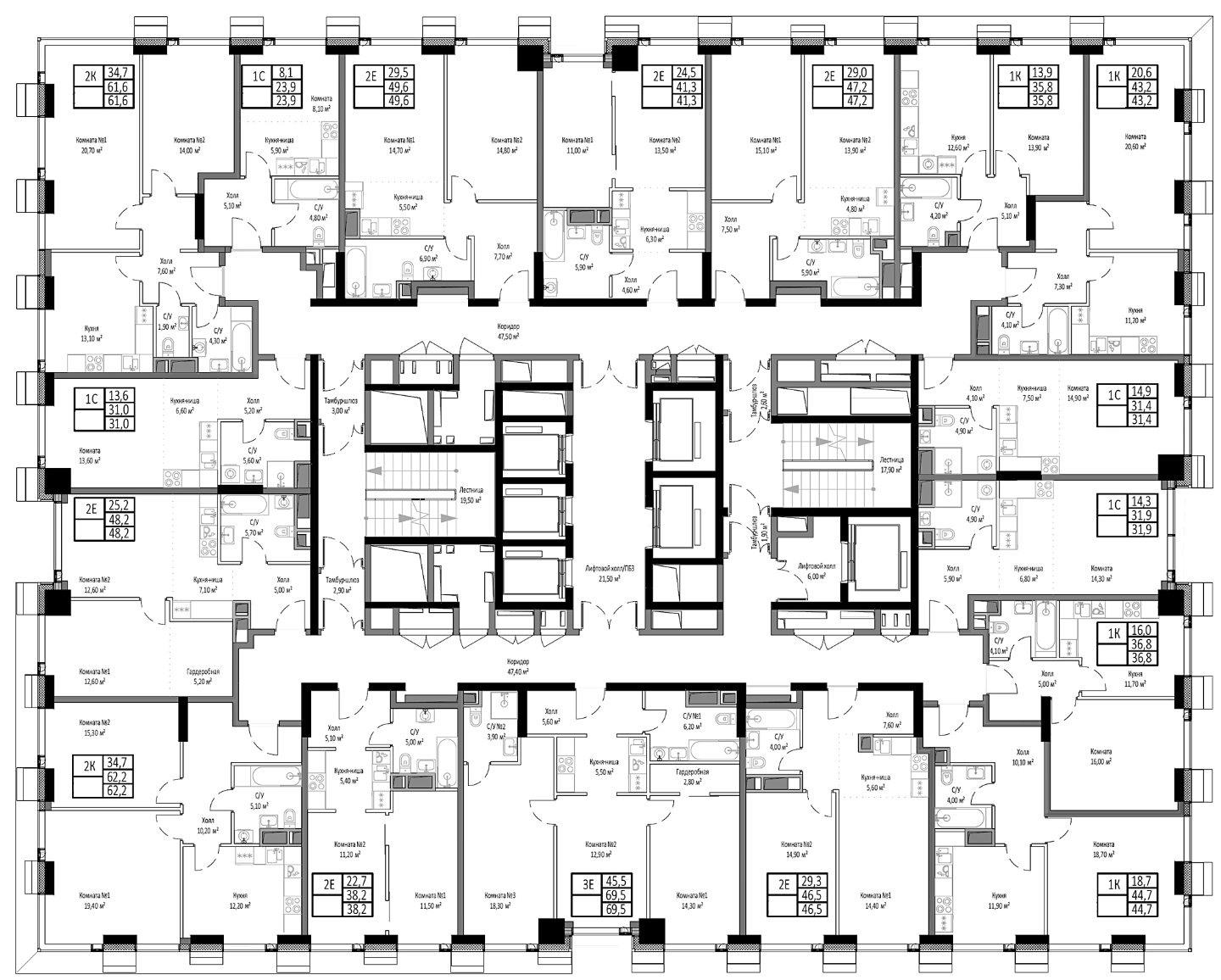 В проекте доступен большой выбор планировочных решений: от студий до пятикомнатных апартаментов с высокими потолками, панорамными окнами и системой кондиционирования для каждого лота. Проект оснащен системой «Умный дом».