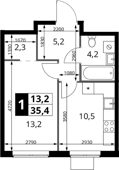 Количество комнат1-к квартираЭтаж13Площадь общая35.4Площадь жилая35.4Площадь кухни10.5Площадь комнат13.2Балконов1Совмещенных санузлов1ОкнаДворОтделкаПредчистоваяТелефонНет
