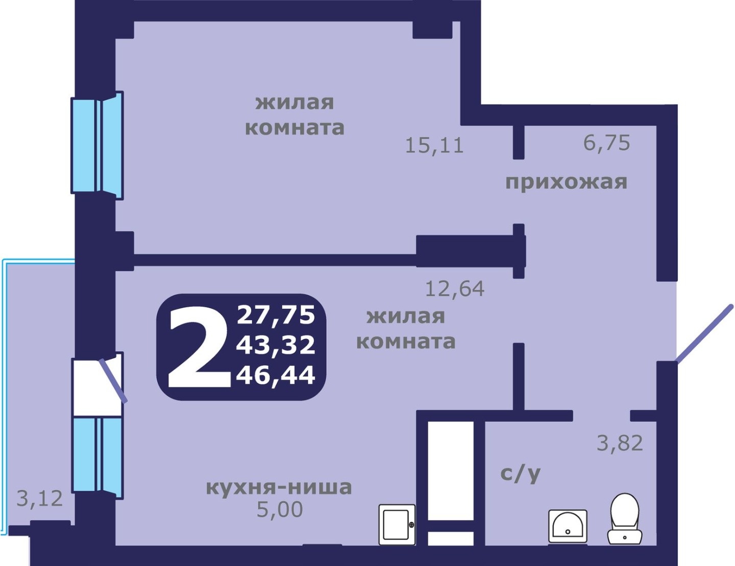 Количество комнат2-к квартираЭтаж9Площадь общая46.44Площадь жилая46.44Площадь кухни5Балконов1Совмещенных санузлов1ОкнаДвор + улицаОтделкаПредчистовая