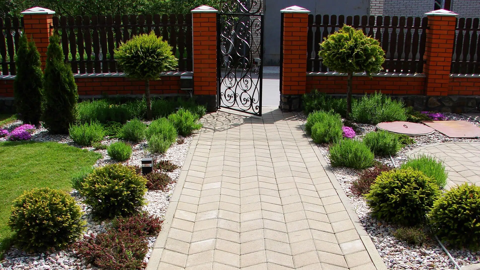 Калитка и вход должны быть хорошо видны — не стоит их "топить" в глухой стене зелени. Карликовые хвойные (туи, можжевельники) структурируют пространство и лишь слегка затеняют вход.