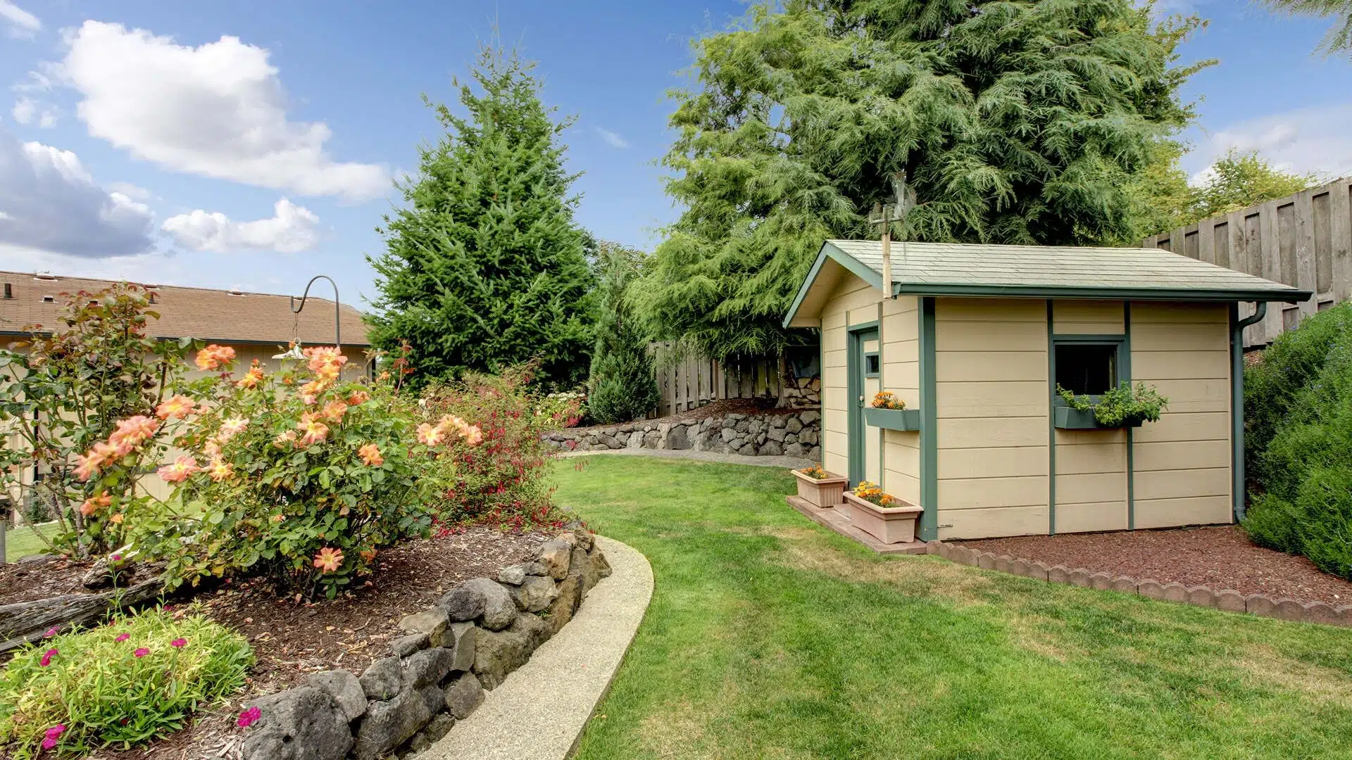 Украсьте хозяйственную зону легким декором. Несколько горшков с растениями, фонарь у входа в сарай, небольшая доска для заметок — этих деталей достаточно, чтобы пространство выглядело ухоженным.