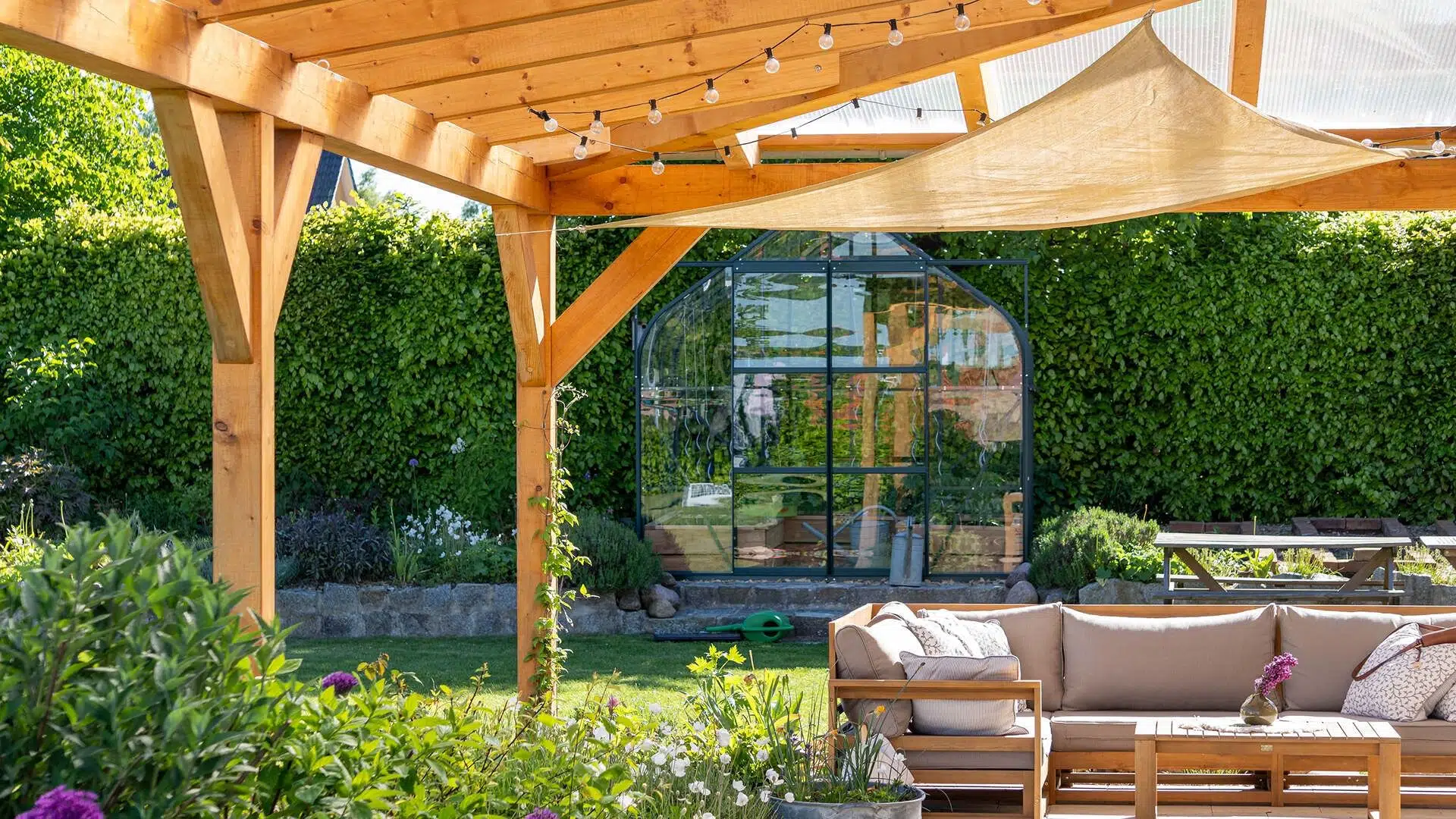 Эта "гостиная" участка — место для релакса, приема гостей и семейных обедов. Здесь можно разместить: