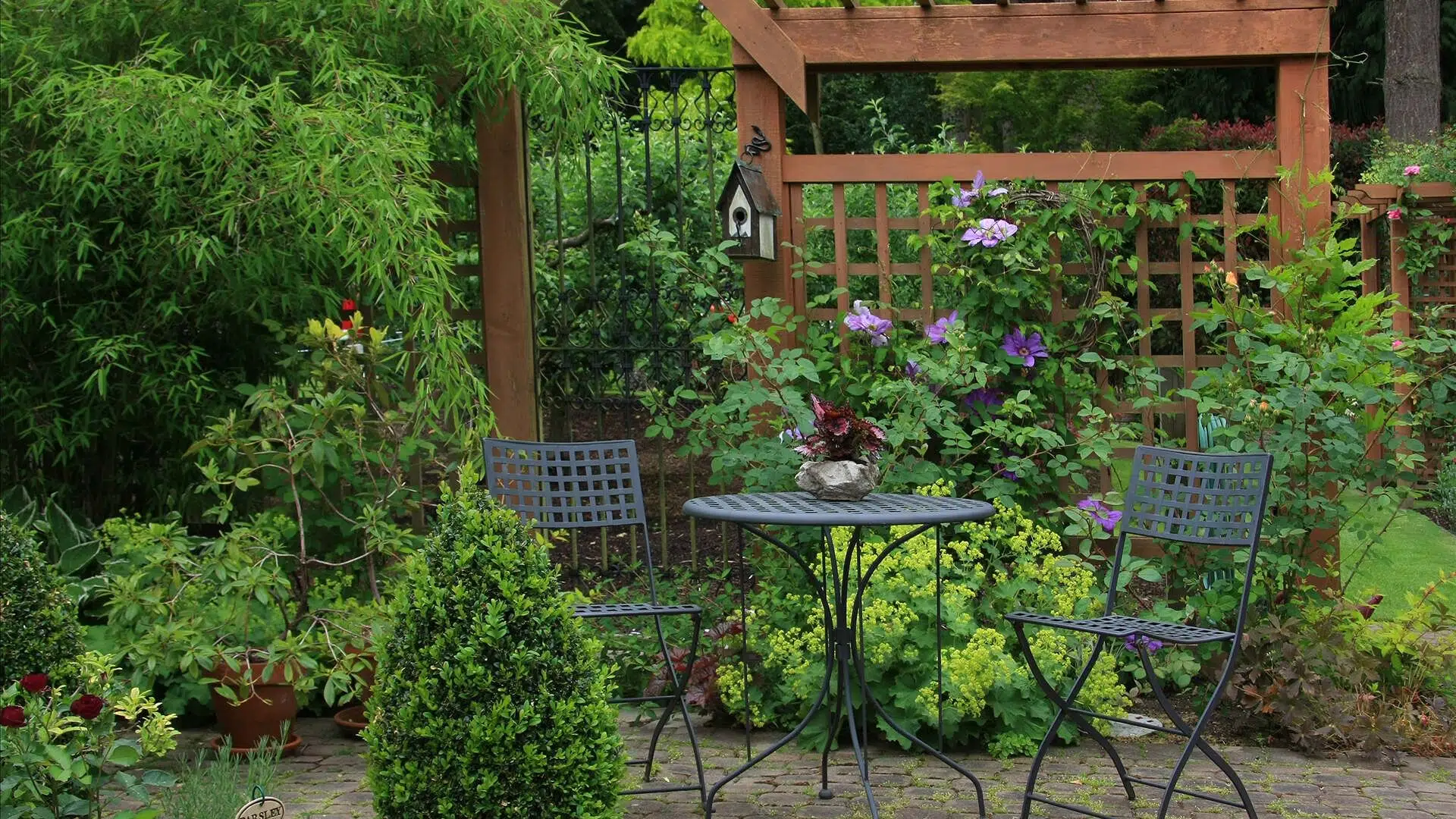 С помощью шпалеры маскируют хозяйственные постройки, делают фоновое оформление, например, для патио, и скрывают компостную кучу.